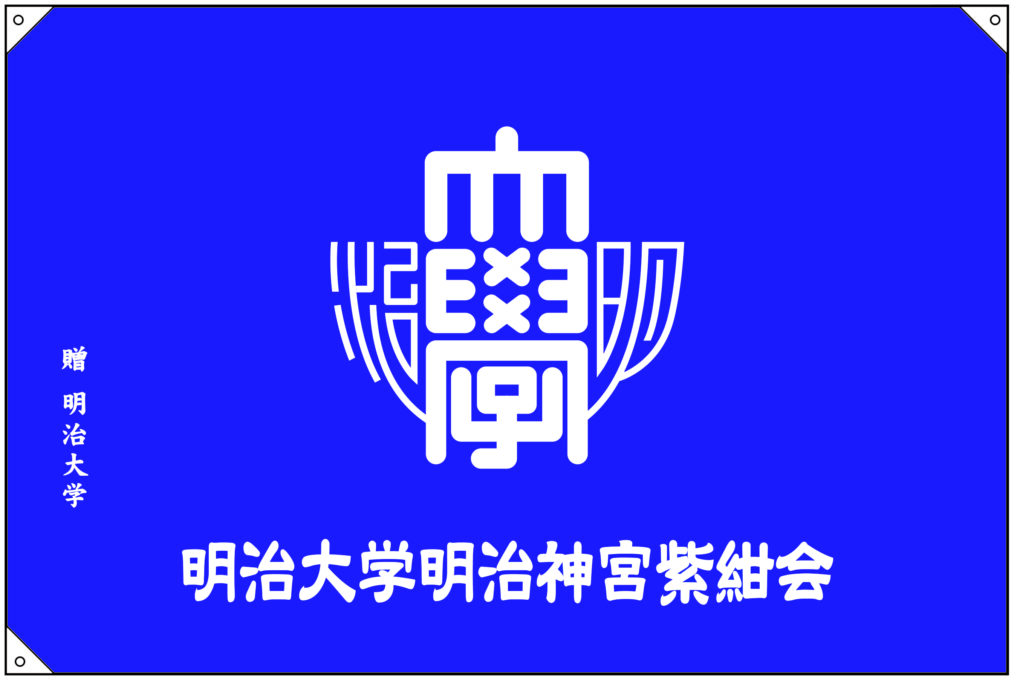 学校法人明治大学がその商標権者です。M会やT会に負けない独自の紫紺カラーを出して、校友会を補完するクラスター組織として母校を盛り立てていきましょう。